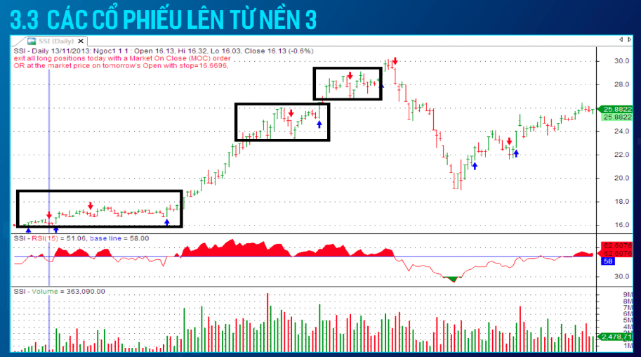- Các cổ phiếu đi lên từ nên thứ 3 biến động lỏng thì nên cân nhắc thoát hàng.