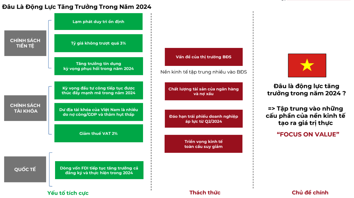 - Kỳ vọng FED bắt đầu hạ lãi suất vào quý 2, đưa ls FED fund rate về 4.75%-5%(vẫn rất cao).