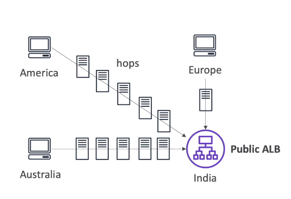 - Chúng ta muốn dữ liệu được truyền nhanh nhất có thể thống AWS network với độ trễ tối thiểu.