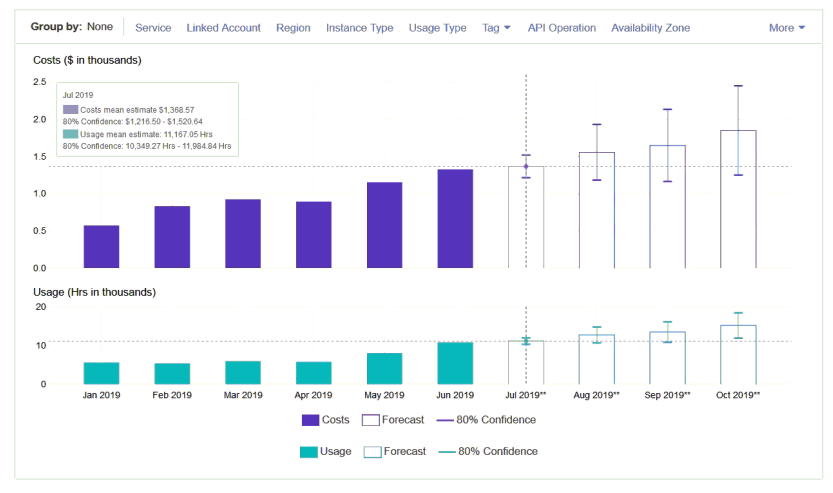 Từ đó giúp chúng ta chọn được Savings Plan để có chi phí sử dụng tốt hơn. - Dự đoán mức độ sử dụng cho 12 tháng tới theo những dữ liệu đã có từ trước.