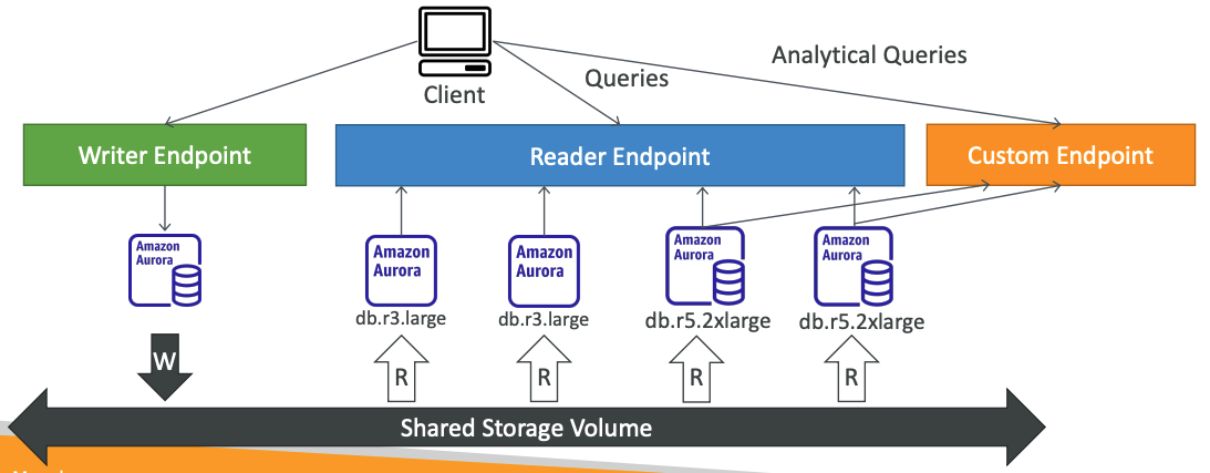 - Ví dụ cta có một cụm instance to hơn và nó tính toán tốt hơn, tạo một custom endpoint trỏ đến cụm đó để thực hiẹn các query phân tích dữ liệu(hay các query cần tính toán nhiều) để xử lý nhanh hơn.