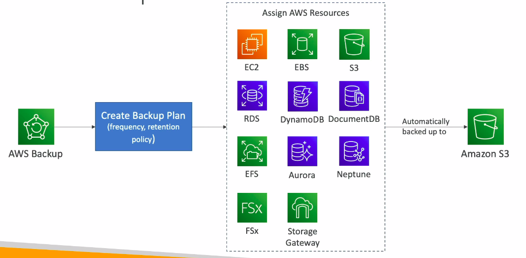 - Hỗ trợ chúng ta quản lý cũng như tự động backups cho nhiều AWS Services.