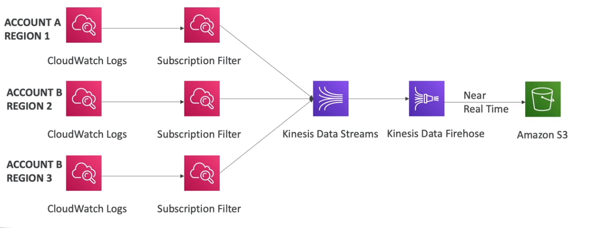 Kiến trúc để thu thập logs từ nhiều accounts, regions về một chỗ: