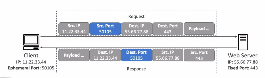 - Clients sẽ connect tới một defined port và mong đợi rằng sẽ được nhận response từ một ephemeral port.