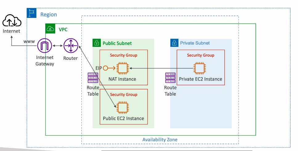 Phải config thêm Route Table để định tuyến traffic của các EC2 Instance trong Private Submet sang NAT Instance.