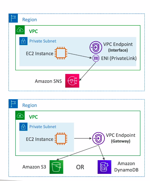 - Là dịch vụ giúp chúng ta có thể kết nối trực tiếp từ trong private subnet tới các services khác của AWS, thông qua một private network của AWS được gọi là privatelink, thay vì thông qua internet.