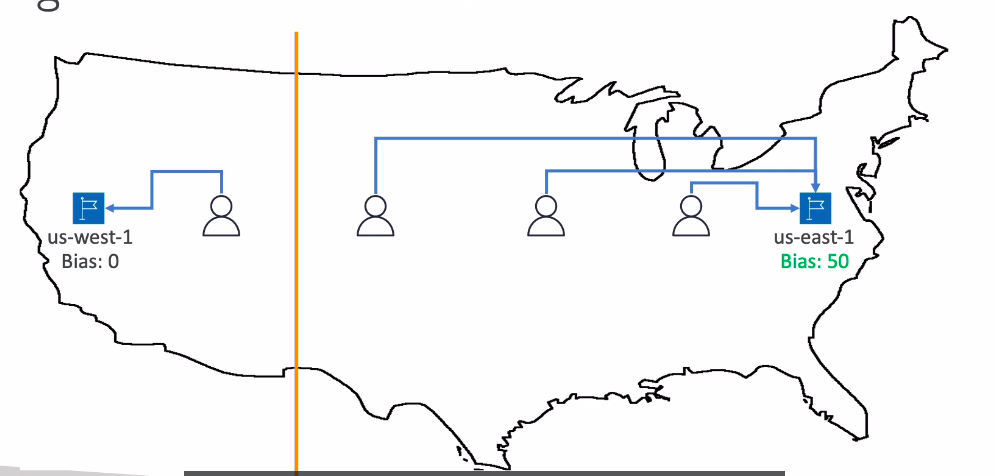 - Vẫn dựa vào vị trí của user và resouce, nhưng thằng này có khả năng điều chỉnh lượng traffic tới resouce bằng thông só bias. Set bias càng cao thì tỉ lệ traffic đổ về càng lớn.