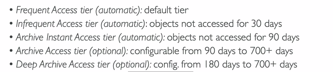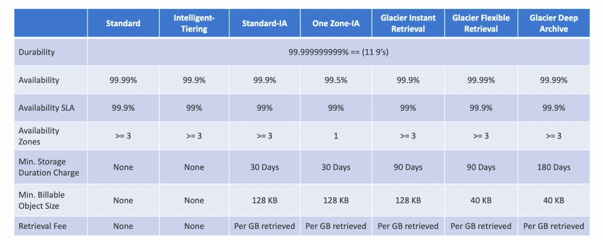 - Amazon S3 One Zone-Infrequent Access (S3 One Zone-IA