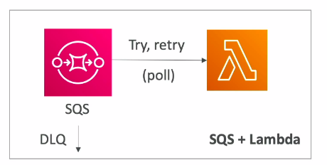 - Lambda pull mess từ SQS về để xử lý, nếu xử lý không thành công thì push ngược trở lại SQS.