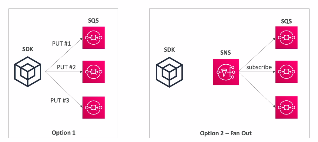 - Tăng cường độ tin cậy bằng cách thông qua SNS, kiêu gì nó cũng gửi message lên cả 3 Queue.