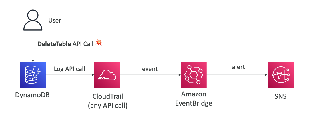 - Ngoài ra nó còn được sử dụng để nhận các events từ các API được call. Từ đó có thể gửi tới các service khác ví dụ như SNS trong trường hợp khi người dùng xoá một bảng sẽ gửi mail tới tất cả các AWS accounts trong organization.